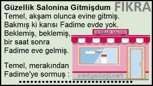 Temel, akşam olunca evine gitmiş. Bakmış ki karısı Fadime evde yok. Beklemiş, beklemiş, bir saat sonra Fadime eve gelmiş.